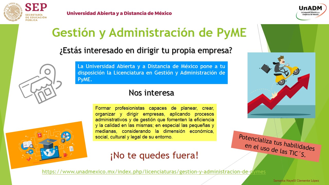 Otras características necesarias para cursar el programa de Licenciatura en Gestión y Administración de PyME son:
